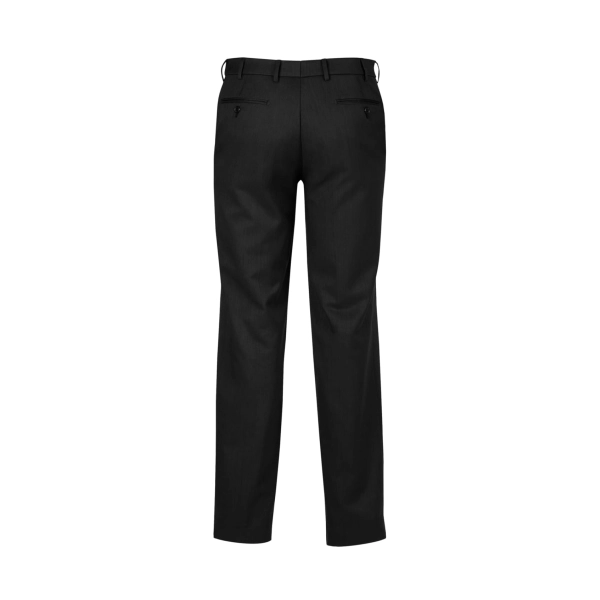 Features: Flat front and straight through the leg. With hidden elastic waistband for extra stretch and comfort. A ‘roomier’ mid-rise and deep side pockets.