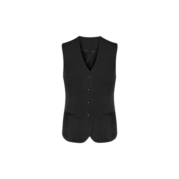 Features: A classic vest perfect for hospitality. Fully lined with fused panels, tailored fabric back, and front welt pockets.