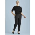 Features: Straight leg pant with a slight tapering through the leg. Elastic sides and back, high-rise and side pockets for comfort and functionality.