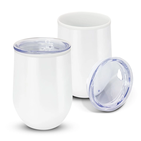 Smart 350ml BPA-free double wall coffee cup with a timeless curved design and a secure push on lid. It has a stainless steel outer wall and a polypropylene inner wall which keeps drinks hot for longer. Cordia has a soft non-marking base and laser engraves to a shiny steel finish except for the stainless steel cup, which engraves to a natural etch. This product is not dishwasher safe and handwashing is recommended.