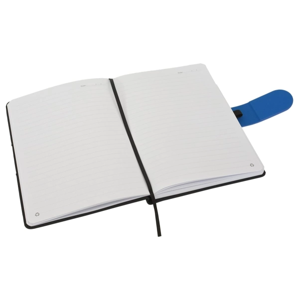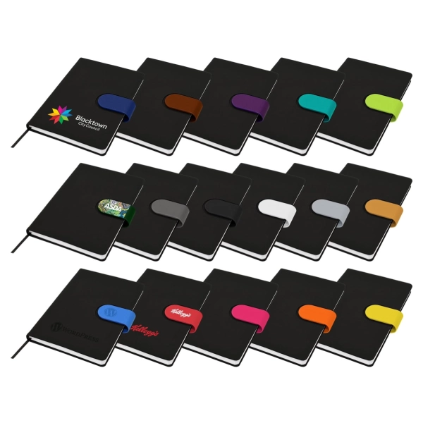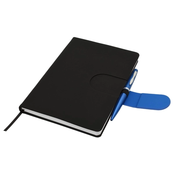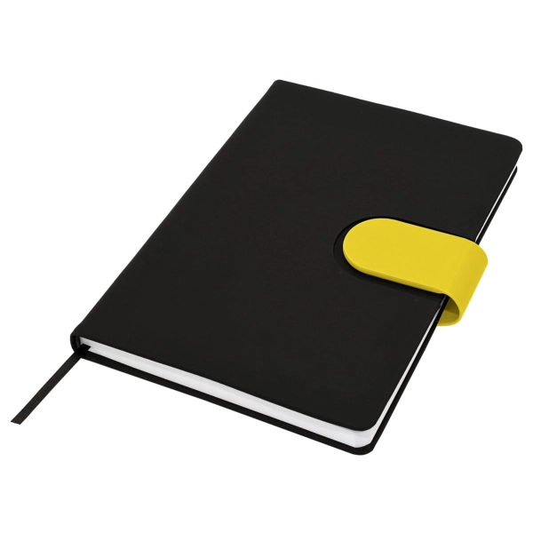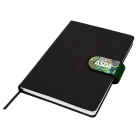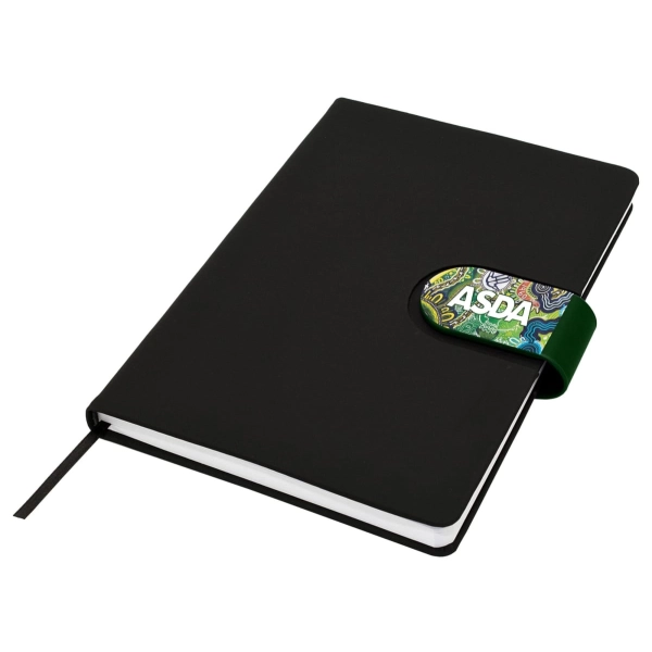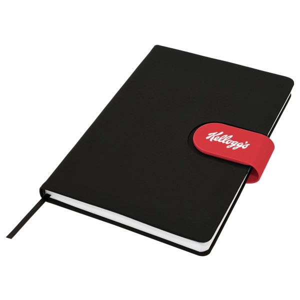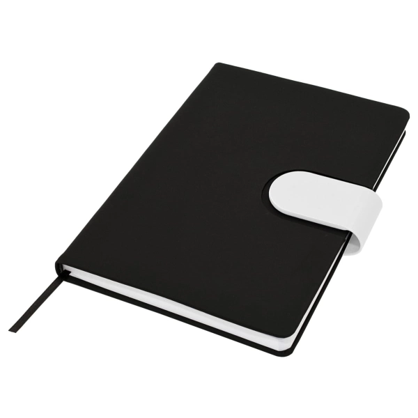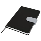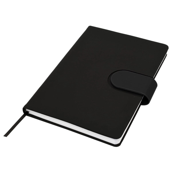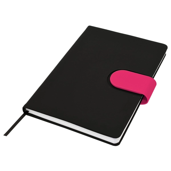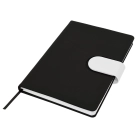 Cordoba A5 Notebook truly raises the bar when it comes to both quality and style. This hard cover notebook is available in matt black with a choice of 16 different coloured snap-on magnetic closures. Featuring a handy pen loop, ribbon marker and 196 pages of recycled paper.