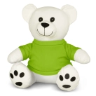 Soft cotton teddy bear with embroidered eyes, RPET filing and an optional polyester t-shirt which is available in eleven colours. This cotton bear is perfect for any occasion and provides a perfect canvas for collecting signatures and personal messages at events and milestones. Plush animals provide a cute and cuddly branding option and are great for brand recognition and spreading goodwill. They have also been manufactured to meet with AS/NZS Safety Toy Standards.