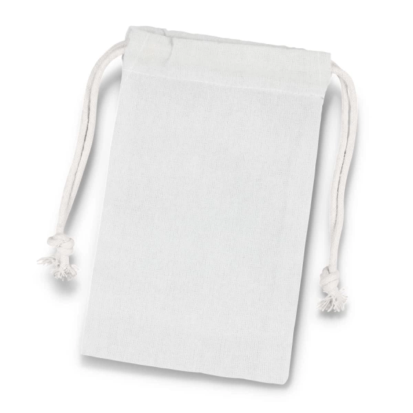 Small drawstring gift bag that is manufactured from 120gsm cotton.