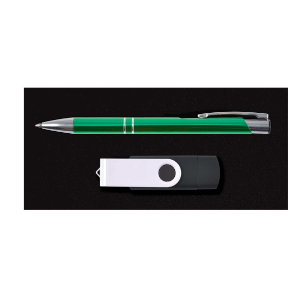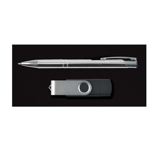 Introducing the Cove Gift Set, featuring the stylish aluminium Napier Pen and an 8GB Swivel Flash Drive. This sophisticated gift set is perfect for professionals and tech enthusiasts alike. Packaged in a sleek black two-piece cardboard gift box with a laser-cut foam insert for secure placement, it offers multiple colour combinations to suit brands' preferences.