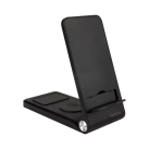 The Cromer 3n1 wireless charging stand provides fast charging for your Qi-compatible phone, TWS earbuds, and iWatch. In addition, the Cromer offers horizontal and vertical phone charging with its dual phone coils, and provides multiple safety backups with Foreign Object Detection, over-current, over-temperature and short-circuit protection. Connect this device to any power adaptor providing 5V/3A or 9V/2A output to start charging. Includes Type-C charge cable and user manual. Please Note: This product will only charge one device at a time when using a standard USB wall charger. Additionally, it will only charge 3 devices simultaneously when using the specified Quick Charge 3.0 wall charger. (Not supplied with this product).