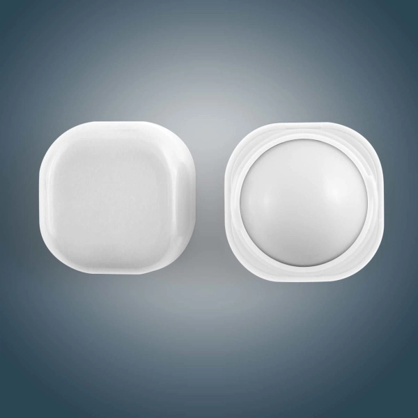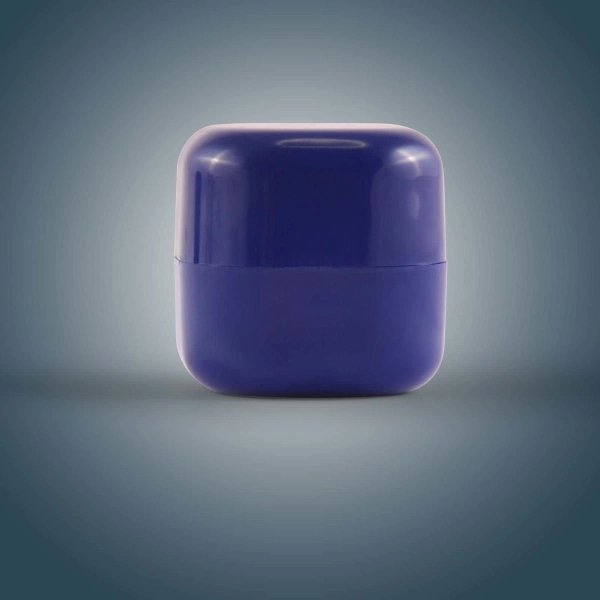 The Cube Lip Balm features a soothing vanilla formula to moisturize dry lips. It comes in a square container with a 6.5g lip balm ball inside and a twist-lock cap. Available in three colours, each with an ingredients label on the base.