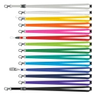 Build your own lanyard in three easy steps. Select one of the four polyester fabric sizes then choose the lanyard colour from the standard colour palette and finally choose the attachments. To simplify ordering the attachments you can choose our standard attachment configuration which includes a single metal clip and a safety clip or add any of our optional extra attachments as required. PMS colours are available on request for a minimum of 500pcs. PMS colour matching is approximate. A production lead time of 20 working days applies to this product by air freight and larger orders can be sea freighted on request to reduce the freight cost.