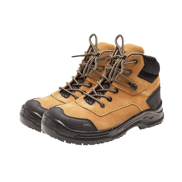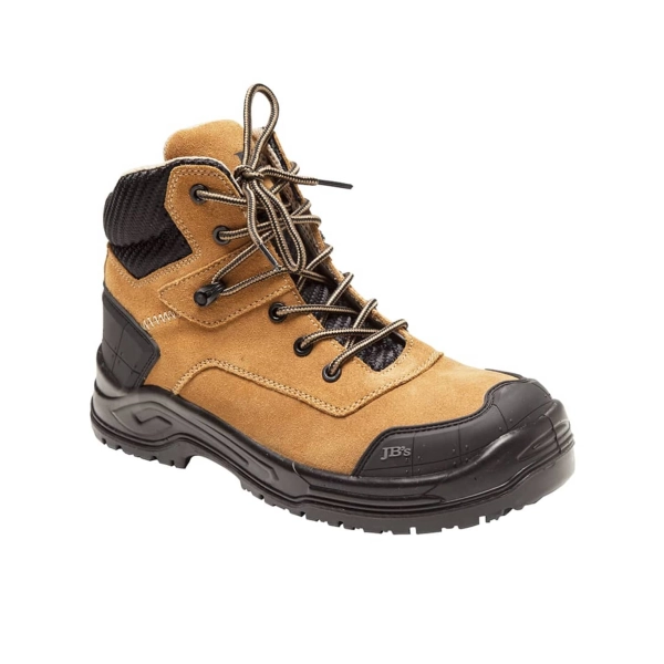 PU/PU injection sole | 200J impact resistant composite toe cap | Fully lined with polyester mesh | TPU heel protector, front over cap, YKK zipper, zip opening with hook & pile tape closure | 10 plastic eyelets | Shock absorbent heel | Oil resistant, Anti-static sole | SRC slip resistant sole | Removable PU insock | Individually boxed, carton of 5 | Meets AS/NZS 2210.3:2009 Certified by BSI BMP No 702610