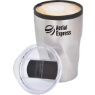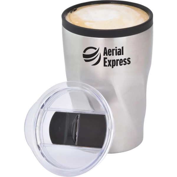Cyclone is ideal for use around the office or while on the go. This double wall mug features a stylish stainless steel outer wall with plastic inner, designed to keep your coffee hot while keeping the outside of the mug cool. The see-through lid with sliding tab prevents spillage while out and about. This mug is available in matt black stainless steel or natural stainless steel.