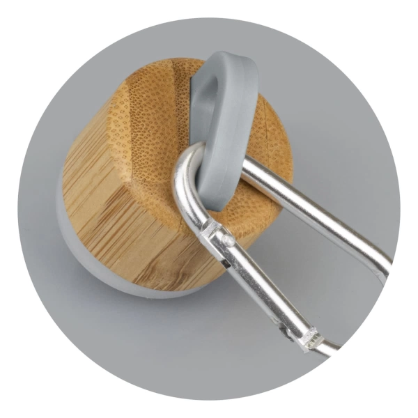 Lightweight 750ml aluminium bottle featuring a screw on bamboo lid with a carabiner. An optional natural gift box is available on request.