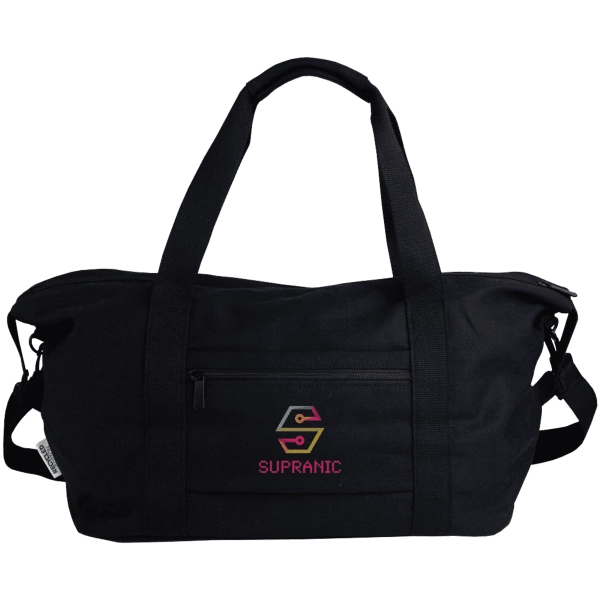 Manufactured from recycled pre-consumer cotton certified under the Global Recycled Standard 4.0. This modern styled laptop duffel is perfect for the environmentally conscious consumer.
