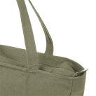 With its large capacity, the recycled Weekender tote bag is perfect to bring on a short getaway trip. The tote bag features a full length zipper, ensuring that items remain protected inside. The main compartment also holds a small pocket with zipper to use for smaller items.