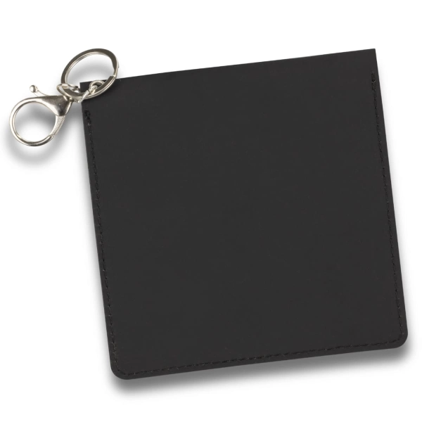 Resourceful key ring pouch made of PU. It features an Iron keyring and a snap closure.