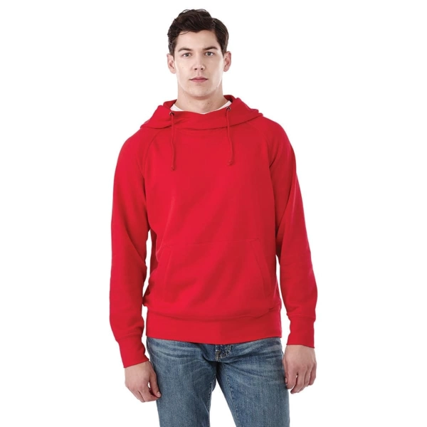 The Dayton fleece hoody offers a relaxed look and unique branding opportunities, including an area to put your logo inside the back yoke and tear-away main label, allowing you to create a completely custom piece. Made from a comfy cotton-poly blend, the Dayton has a trendy crossover-front neckline, rib knit cuffs with thumb exits, an interior phone pocket and headphone cord port.