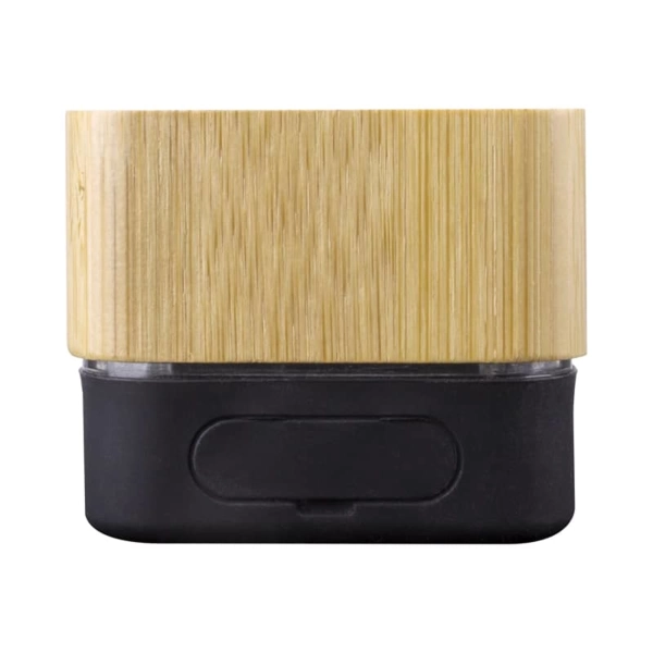 Contemporary design, the Dayton Bluetooth speaker is manufactured from eco-friendly Bamboo and black silicone. This splash-proof speaker with a high-quality audio chip allows you to source music from a smartphone, external device or TF card. Play music through this 3 Watt speaker and bring your favourite artists to life. Includes a combined aulmicro USB charge cable and user manual. Material: Bamboo