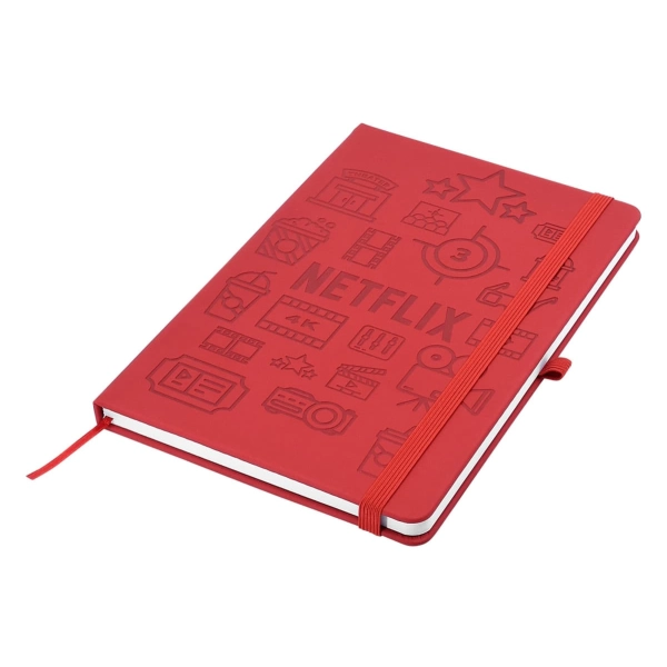 Have you ever wanted to design your own Debossed notebook? Well now you can with ‘Designa Deboss Soft-Touch’. We make it easy – you simply select from our list of options and we make it happen. Crafted from luxurious soft-feel vegan leather, the Thermo-sensitive Soft-Touch material will deboss in a darker shade for a result that will truly impress. Covers are available in 40+ vibrant colours. Match or contrast it from an even wider selection of elastic, pen-loop and marker ribbon colours to match your style. For further personalization, opt for a full-colour printed fly sheet on the inside front and back cover, making this notebook uniquely yours. The option to add an expandable pocket attached on inner back cover is also available.
