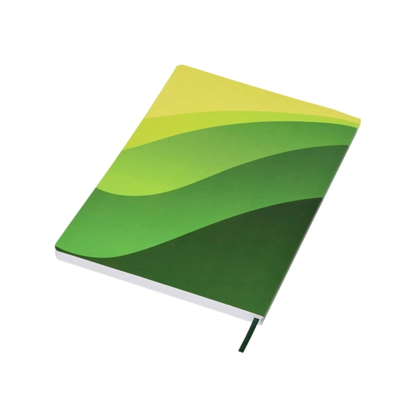 Introducing our A5 size Designa Soft Cover notebook, featuring vibrant full-colour (CMYK) printing on the front, back, and spine of the cover. Elevating its appeal, the cover is finished with a matte lamination, adding a touch of sophistication. Choose from a selection of marker ribbon colours including white, black, yellow, green, red, orange, pink, purple, light blue, royal blue, and navy to match your style. For further personalization, opt for a full-colour printed fly sheet on the inside front and back cover, making this notebook uniquely yours.