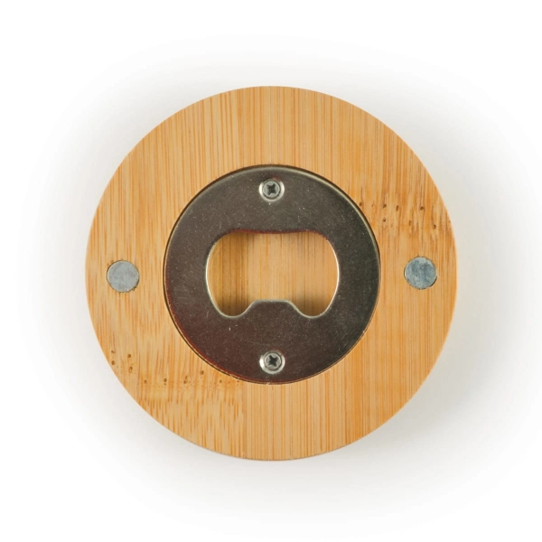 Introducing the Discus Bamboo Bottle Opener Coaster, where functionality meets elegance. Crafted from natural bamboo and steel, this round bottle opener doubles as a stylish coaster, making it a versatile addition to any kitchen or bar. With two strong magnets on the back, it easily attaches to metal surfaces for convenient storage. The comfortable round shape ensures a firm grip for effortless bottle opening. Enhance your drinking experience with this practical and aesthetically pleasing accessory.