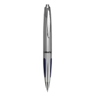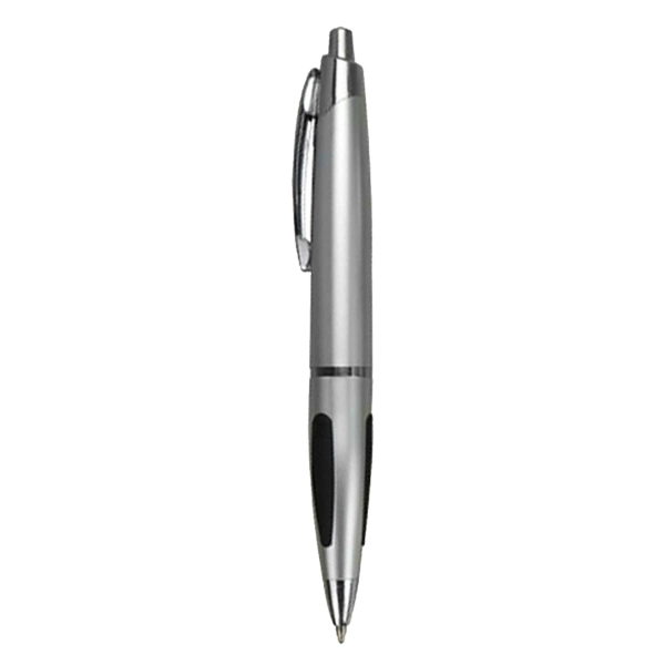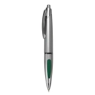 Click action plastic pen with colour patches on grip silver body with shiny silver chrome fittings high quality German manufactured black ink refill 1800 meters writing distance tungsten carbide ball provides you with quality writing.
