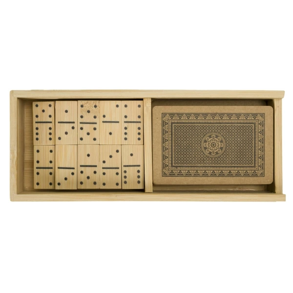 Unleash your competitive spirit with the Dominator Set, featuring a set of kraft playing cards and bamboo dominoes, all neatly housed in a bamboo box with a slide-open lid. This eco-conscious set combines style and sustainability, making it perfect for game nights or as a thoughtful gift.