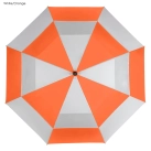 High quality automatic opening golf umbrella it has a vented twin-panel showerproof and windproof eight-panel 190T pongee canopy with two velcro ties strong fiber glass shaft with a metal tip black moulded soft-touch rubber handle and 75cm ribs.