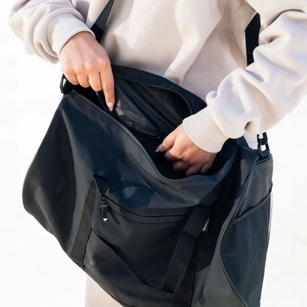 The Dusty RPET Duffle Bag is built for big hauls and bigger impact. With a 35L capacity, it’s made from RPET 210D with PU backing, giving waste a second life while keeping your gear sorted. It features a roomy main compartment, zippered front and mesh side pockets, and an adjustable shoulder strap for easy carry. Designed with utility in mind and minimum fuss, it makes the perfect sports or travel bag.