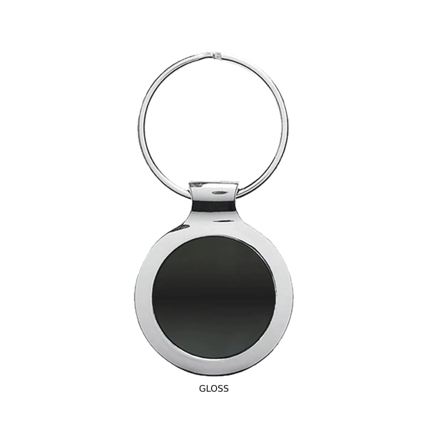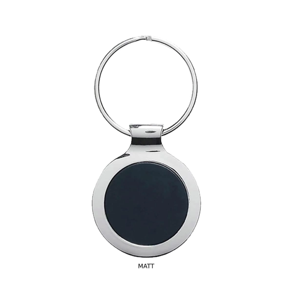 This elegant design keyring is one of most popular keyrings and can be used for almost every single promotional events. It features a simple design a round black matt finishing panel or shiny metal panel in middle framed by chromed shiny base which highlights the corporate logo and information made of zinc alloy metal.