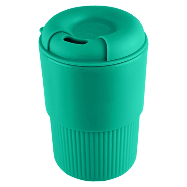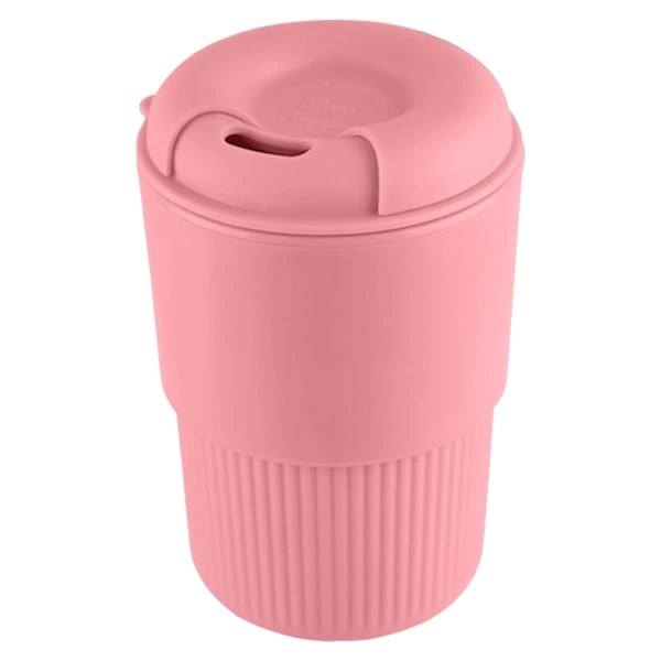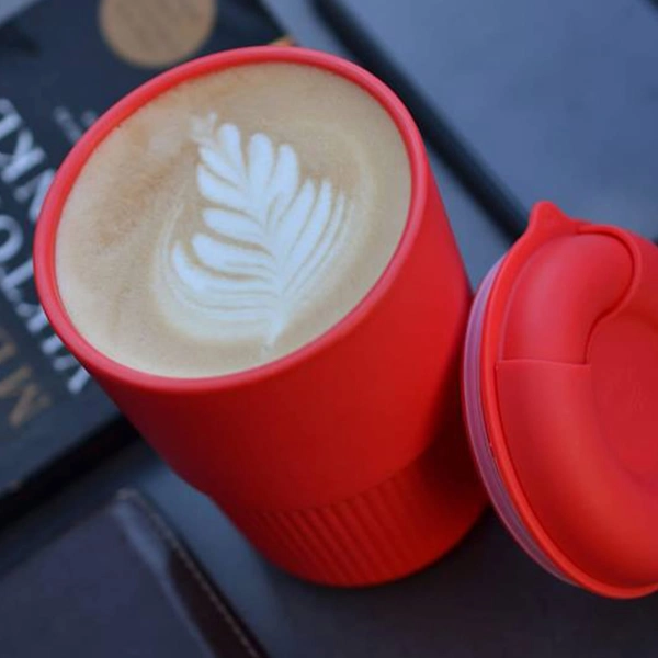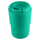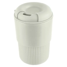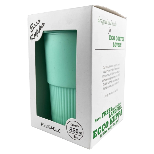 This 350ml Ecco Kuppa branded patented BPA free PP plastic material reusable coffee cup is a perfect product for eco coffee lovers the beautiful sleek design is more suitable and healthier alternatives to conventional plastic this reusable cup reduces vast amount of disposable coffee cups to protect environment. The modern elegant small design makes it portable and suitable for children it has two sizes of drinking holes small hole is designed for children's slow drinking large hole can hold a straw to mind women's makeup. Insulated thermal double wall keeps hands cool and drinks hot steel wire in between two walls' joint enhances seal when temperature over 90 degree. Strong and durable push splash proof silicone band lid access and leak tight. Turning lid top can cover both holes when not drinking detachable lid parts easy for cleaning lower part ridge surface for max comfort handling. It is dishwasher safe but not microwave safe.