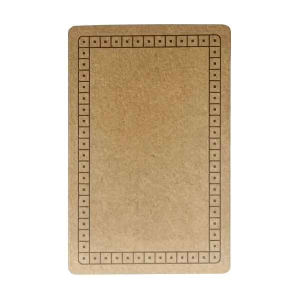 Set of 54 playing cards with no spare cards in a brown cardboard box with branding options on the back of brown cards and also on the brown cardboard box.