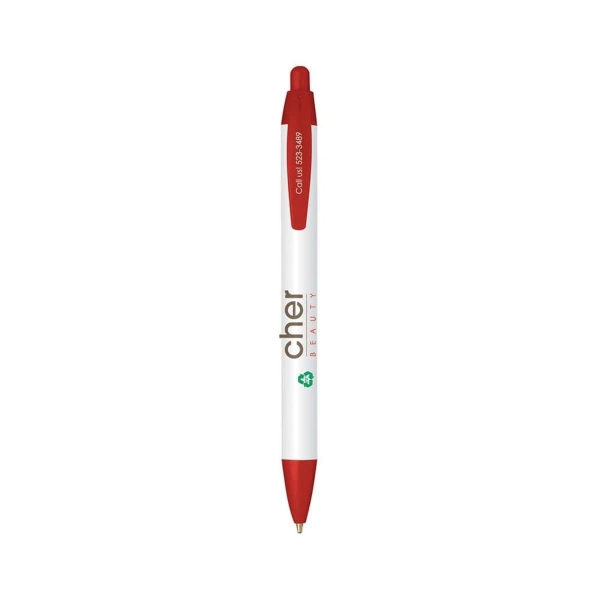 Made with 75% recycled plastic, this pen will earn your brand the respect it deserves in an era of environmentalism. The wide-profile design further allows for a larger imprint area, enhancing the clarity of your branding. Available with blue or black ink.