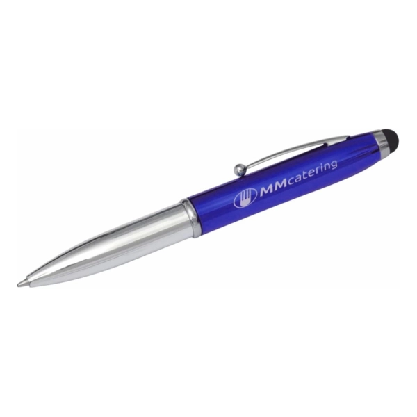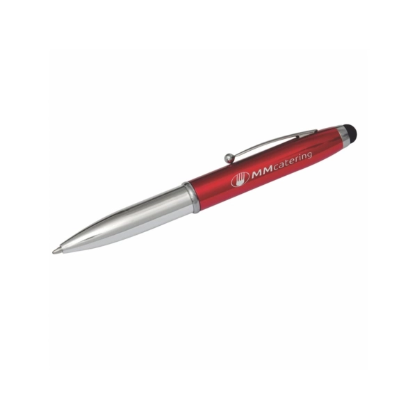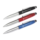 Crafted from a combination of aluminium and plastic, this unique pen features a stylus and LED torch.