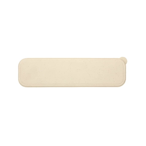 Stationery set of 15cm wooden ruler, wooden pencil sharpener, 2 x wooden pencils, cardboard pen and eraser. Case made from a 50/50 blend of wheat fibre and polypropylene. Eco Credentials: Wheat fibre - by product, reusable, and printed using renewable energy.