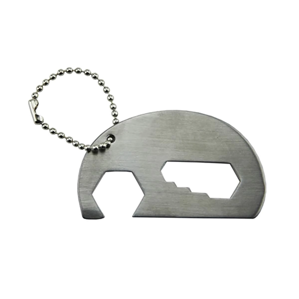 Brushed matt finishing stainless steel bottle opener key ring with positioning wrench in a cute elephant shape. A bottle opener for party picnic and club and also a handy tool whenever and wherever you need to fix a small job. presented in a black gift box.
