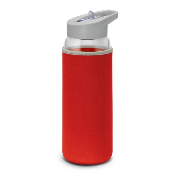 Desirable 600ml borosilicate glass drink bottle which has a soft, insulating neoprene sleeve that keeps drinks cool for longer. Elixir has a secure screw on lid with a carry handle and a flip out drinking valve with a straw. Borosilicate is a lightweight glass that is exceptionally strong and shatter-resistant. It is a natural BPA-free choice for a clean, pure taste and it is a safe alternative to single-use plastics. Elixir is not intended to be used with carbonated or hot liquids. This product is not dishwasher safe and handwashing is recommended.