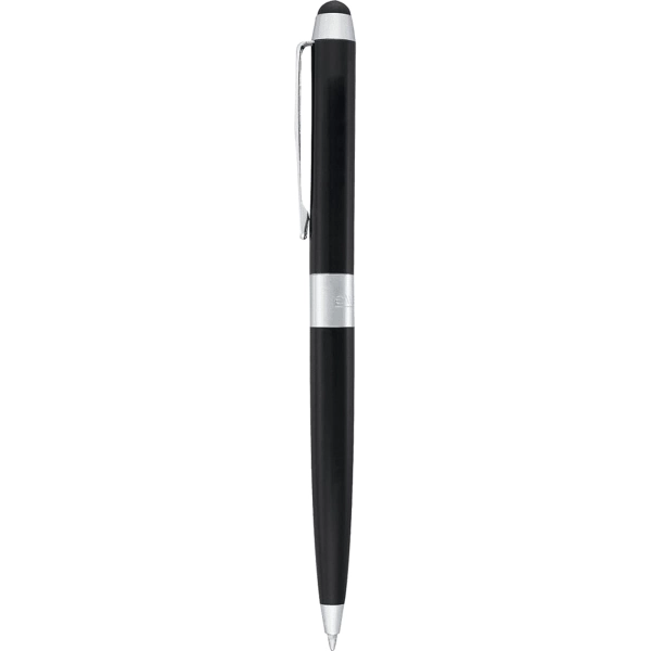 Innovative Elleven design. High-gloss brass body with rubberised stylus end and retractable twist action mechanism. Supplied with Black Ink