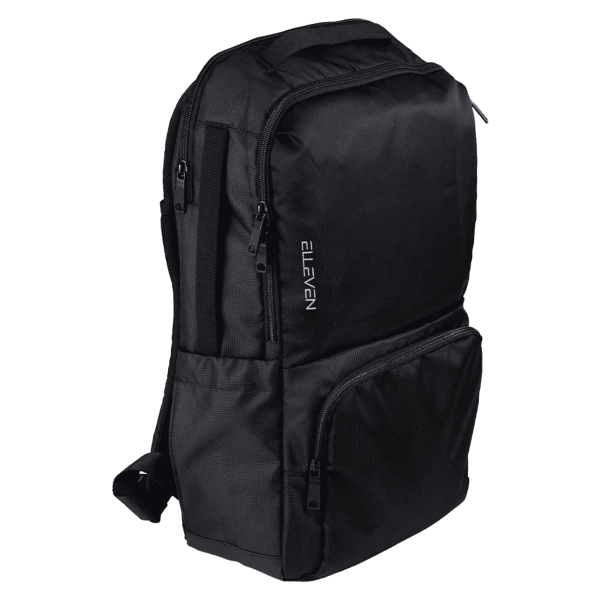 The Elleven Evolve 17" Laptop Backpack is sleek enough for your daily commute and spacious enough to handle your next trip. The front of the backpack features a hidden vertical zippered pocket for quick-access items and a bottom zippered pocket with an internal organizational panel. Inside the spacious main compartment, you’ll find additional organization including a zippered pocket, tablet sleeve, and a large slash pocket. A dedicated padded compartment keeps your 17" laptop secure. With padded shoulder straps, a cushioned back panel, and a luggage pass-through, this backpack is designed for comfort on the move.