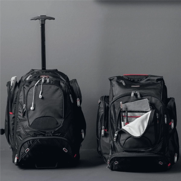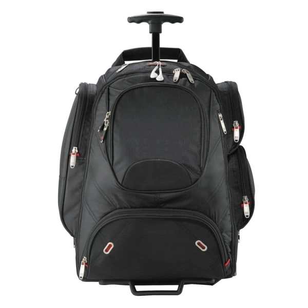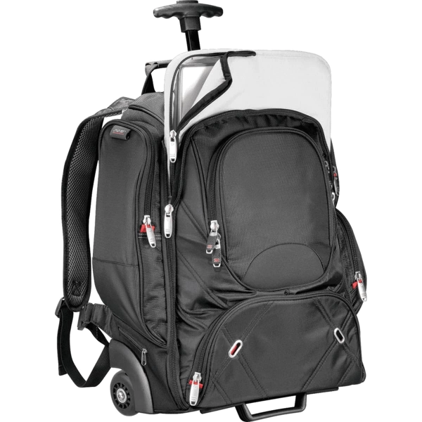 Main zippered compartment includes TSA-friendly laptop compartment expediting airport security. Holds most 17 inch laptops. File dividers and earbud port access. (Pens, Laptop and other devices shown are not included)