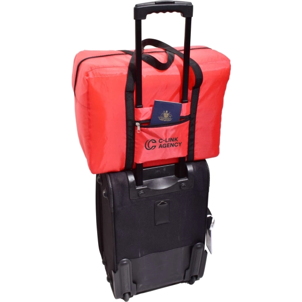 If you’ve ever run out of luggage space while travelling, then you’ll absolutely love our latest ultra light-weight Emergency Travel Bag. Supplied folded into its pouch, it measures only 16cm x 17cm and weighs less than 90 grams, yet opens to reveal a large size travel bag measuring 45cm wide x 35cm high x 21cm deep. This ingeniously designed bag fits securely over the handle of your wheeled luggage, and is even able to hold a passport and travel documents in its pouch. Available in a choice of 11 vibrant colours.