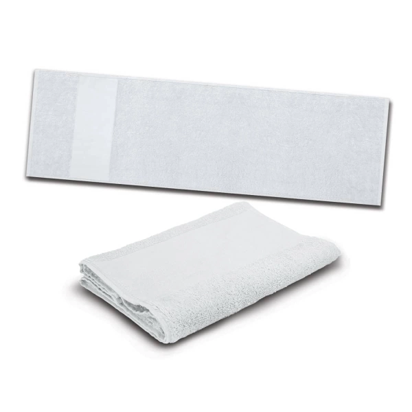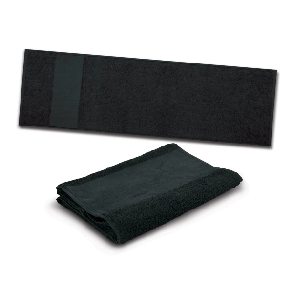 Luxurious 100cm x 30cm sports towel which is manufactured from soft 370gsm cotton terry towelling. It has a smooth fret area for branding.