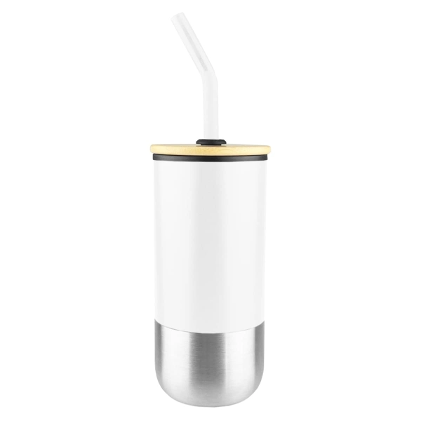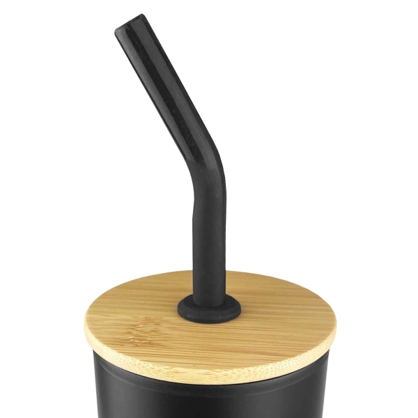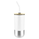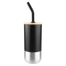 Trendy design 450ml eNova Mug is vacuum insulated double walled with a bamboo lid. The interior part is made of PP and exterior is made of stainless steel. It has a secure push-on natural bamboo lid with a straw which has two parts of metal and silicone and a matching silicone seal. BPA-free and is not dishwasher safe handwashing is recommended.