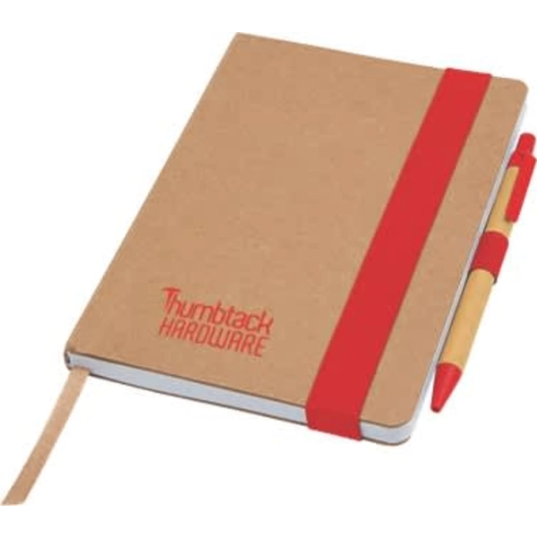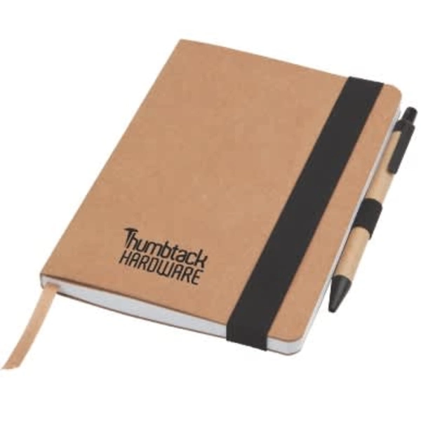 Made from recycled paper, these Enviro Notepads are supplied together with a recycled pen. Featuring elastic closure, page ribbon and pen holder, these pads make the ideal gift. Available with black, blue or red trim.