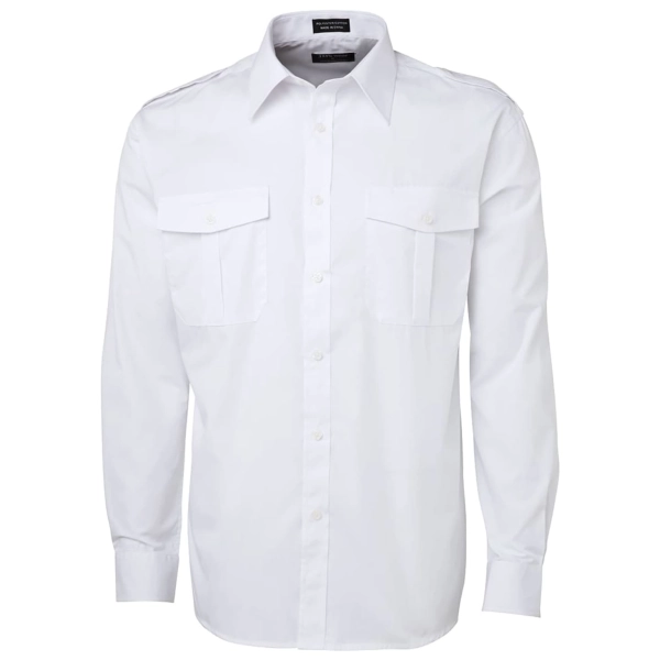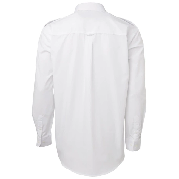 Original fit | 65% Polyester for durability, and 35% Cotton for comfort, 110gsm | Two-piece collar with collar stays | Button-down epaulette on both shoulders | Two reinforced chest pockets with button-down flap, one with pen inserts | Curved hem | 2 needle lap seam for improved durability | Easy care fabric | Long-sleeve: traditional adjustable button cuffs and placket | Individually packed in JB's logo bag with fit measurement guide | 2XS only in White