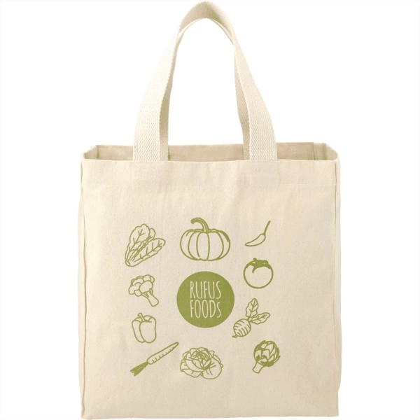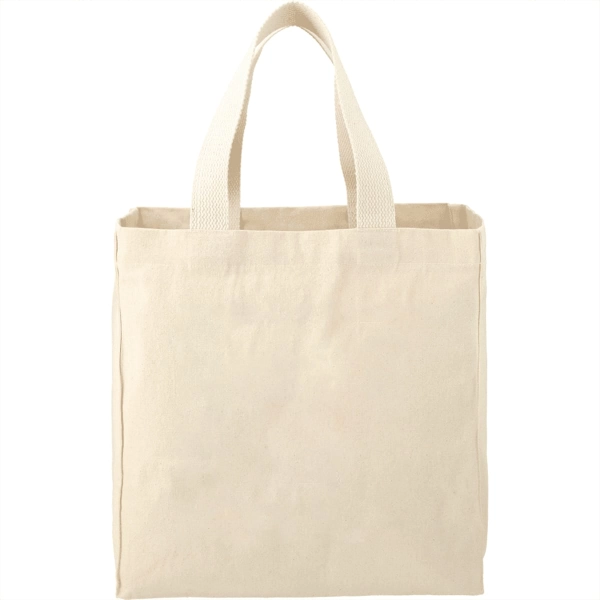 The Essential 8oz Cotton Grocery Tote features an open main compartment and durable 8oz cotton fabric along with thick webbing handles. This tote can help you reduce your environmental impact by eliminating hundreds of plastic bags over the life of this tote. Capacity of approximately 8L.