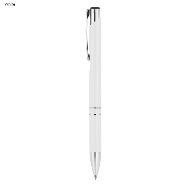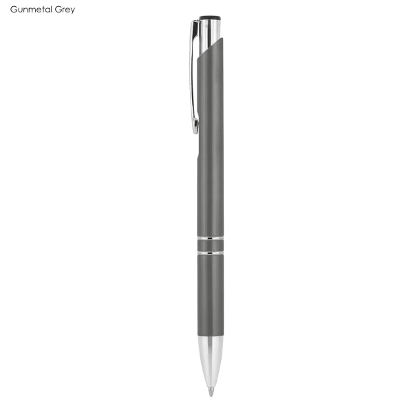Popular aluminium stylish design pen with shiny silver fittings and matt finishing barrel click action with plastic Parker-Type German manufactured black ink refill 1200 meters writing distance tungsten carbide ball provides you with quality writing.