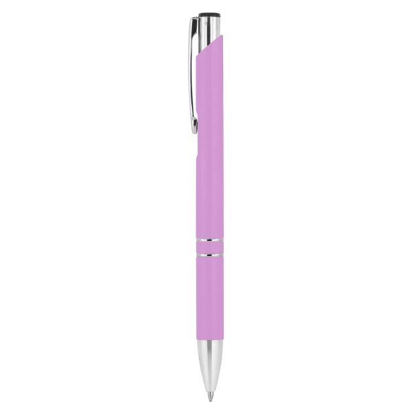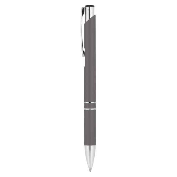 Popular aluminium stylish design pen with shiny silver fittings and soft-touch rubberized barrel click action with plastic Parker-Type German manufactured black ink refill 1200 meters writing distance tungsten carbide ball provides you with quality writing.