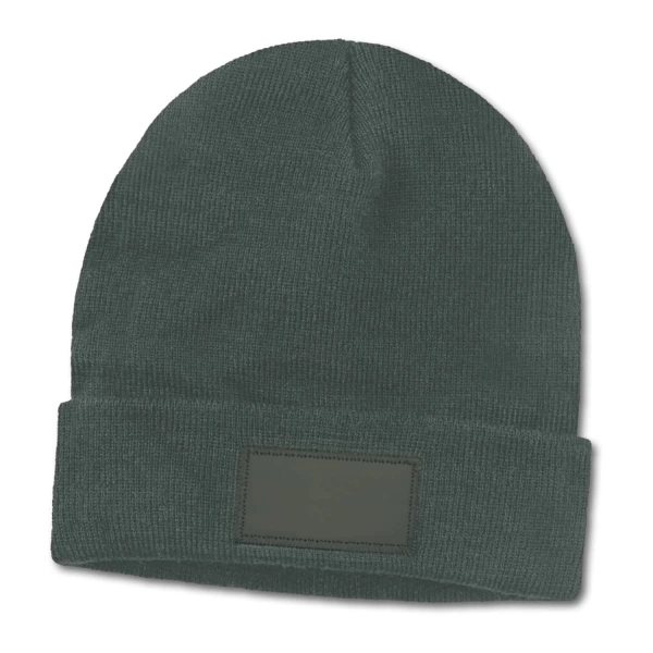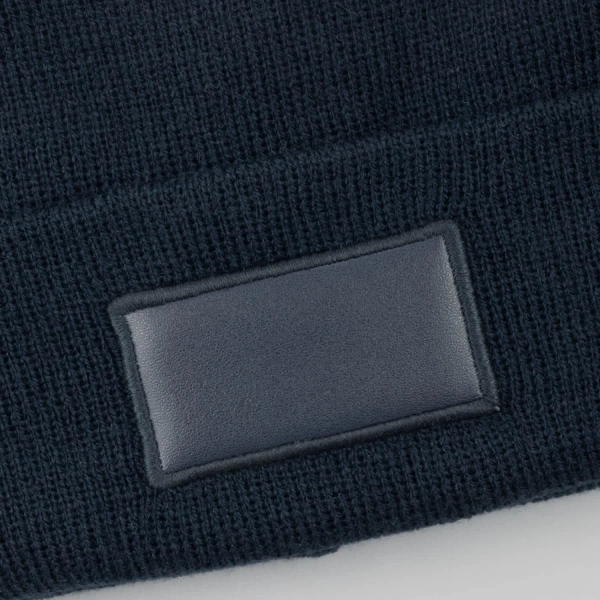 Warm knitted acrylic beanie with a roll up cuff. It has a matching leather look patch that provides an affordable branding option. It is available in one size which will fit most people.