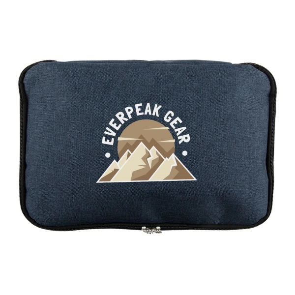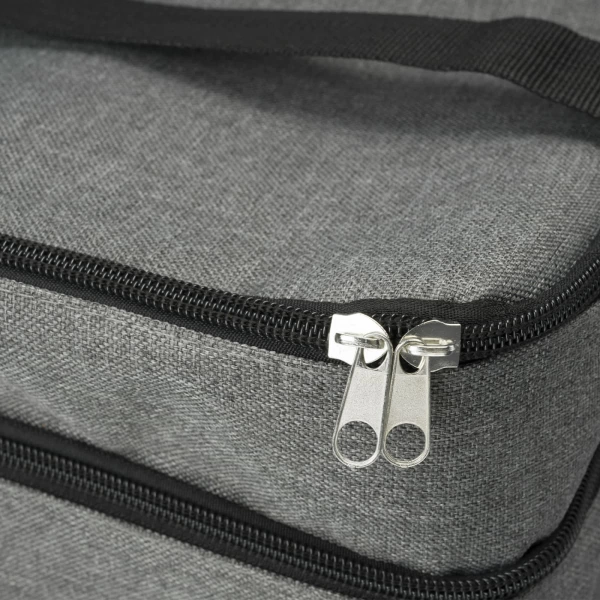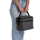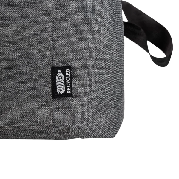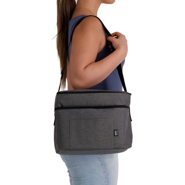 Discover the Duo RPET 2 Compartment Cooler Bag, a practical and eco-conscious solution for keeping your food and beverages cool. Made from RPET polyester 600D with PEVA lining and PE foam, this cooler bag is available in Navy Blue or Grey, offering a stylish and sustainable choice to suit your preference. It features two separate compartments to keep items organized and fresh. The adjustable black polyester web carry strap ensures comfortable transport, while the front pocket (180mm x 110mm) is perfect for storing small items like keys or bottle openers. Measuring approximately 300mm x 210mm x 220mm H and with a 14L capacity, this large cooler bag is ideal for various occasions. It includes an internal care label and an RPET tag on the outside, highlighting its sustainable design. The black zipper closure adds a sleek touch to its functionality.