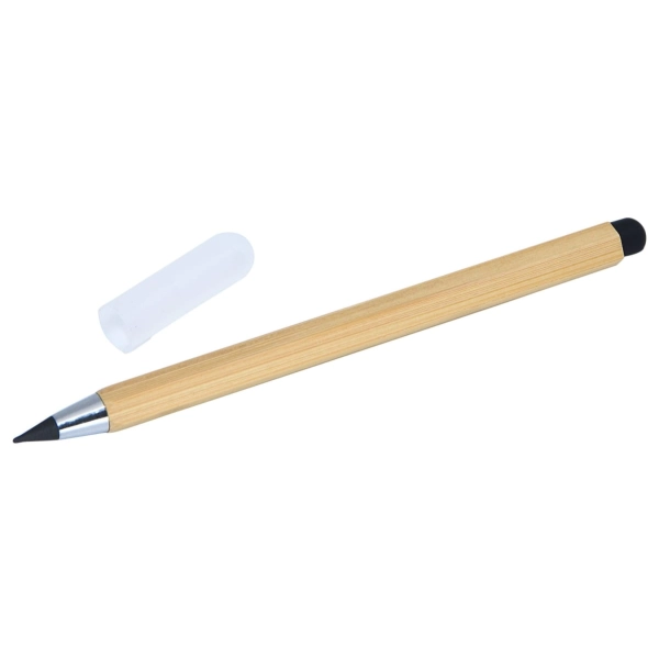 Step into the writing revolution with the Everlast Inkless Stylus Pen. Bid farewell to frustrating pens that run out at the worst times. Our ingenious alloy tip ensures endless writing without the need for sharpening. Alongside its touch-sensitive stylus, Everlast features two rulers and is constructed from environmentally conscious bamboo. Writing colour is grey. (Part of our Eco-Friendly Pen Range)