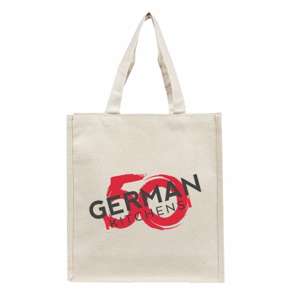 A thick high quality 12oz 100% cotton canvas tote bag with inside PVC laminated which makes the material thicker and harder. Short shoulder handles. Large printing area for your logo a great bag to show the quality and your logo branded for the next event.
