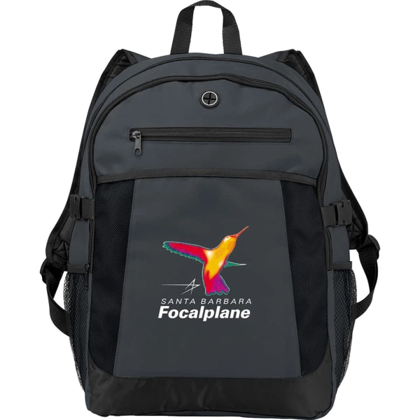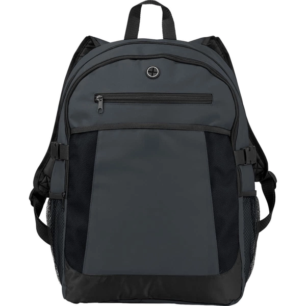 Large zippered main compartment featuring dedicated laptop sleeve which can hold up to a 15 inch computer. Double buckle closure for added security and design.